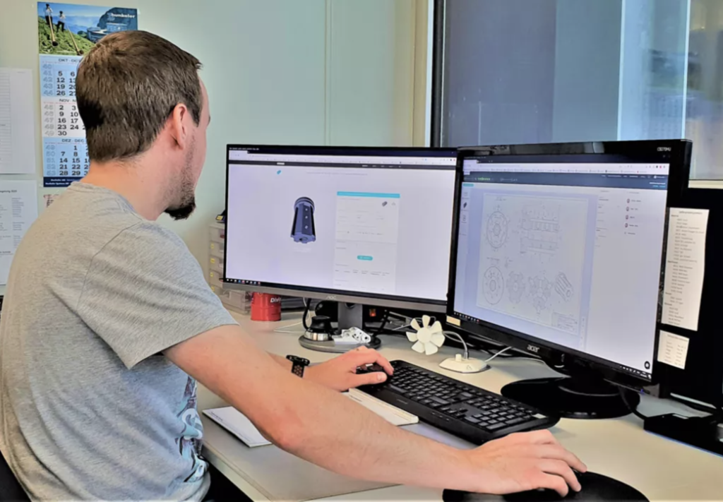 Die künstliche Intelligenz namens Marvin ermittelt im Hintergrund, ob der angefragte Artikel bereits gefertigt wurde oder ob es einen ähnlichen Artikel in der Datenbank gibt. Wenn dies der Fall ist, wird dieser angewählt und der ganze Prozess wird automatisch erstellt. Ebenfalls kann Marvin die 3D-Modelle analysieren und eine Zeitschätzung abgeben.